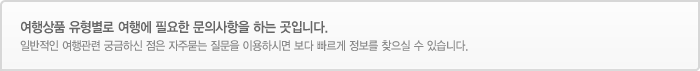 여행상품 유형별로 여행에 필요한 문의사항을 하는곳 입니다